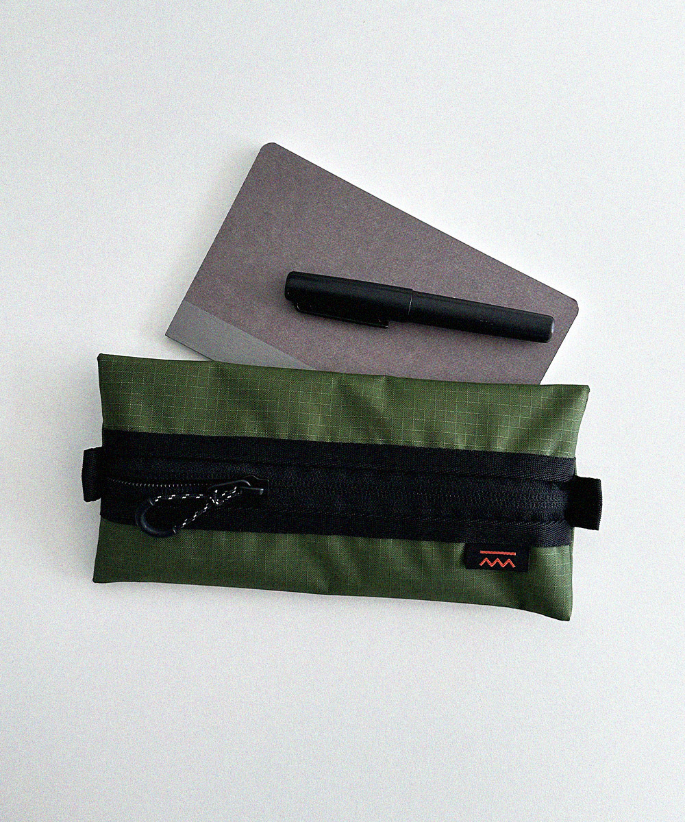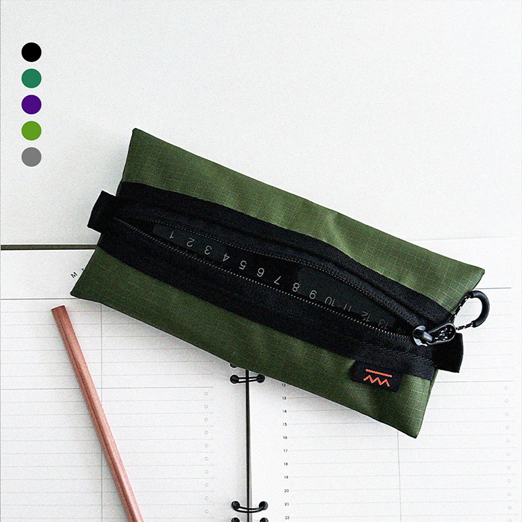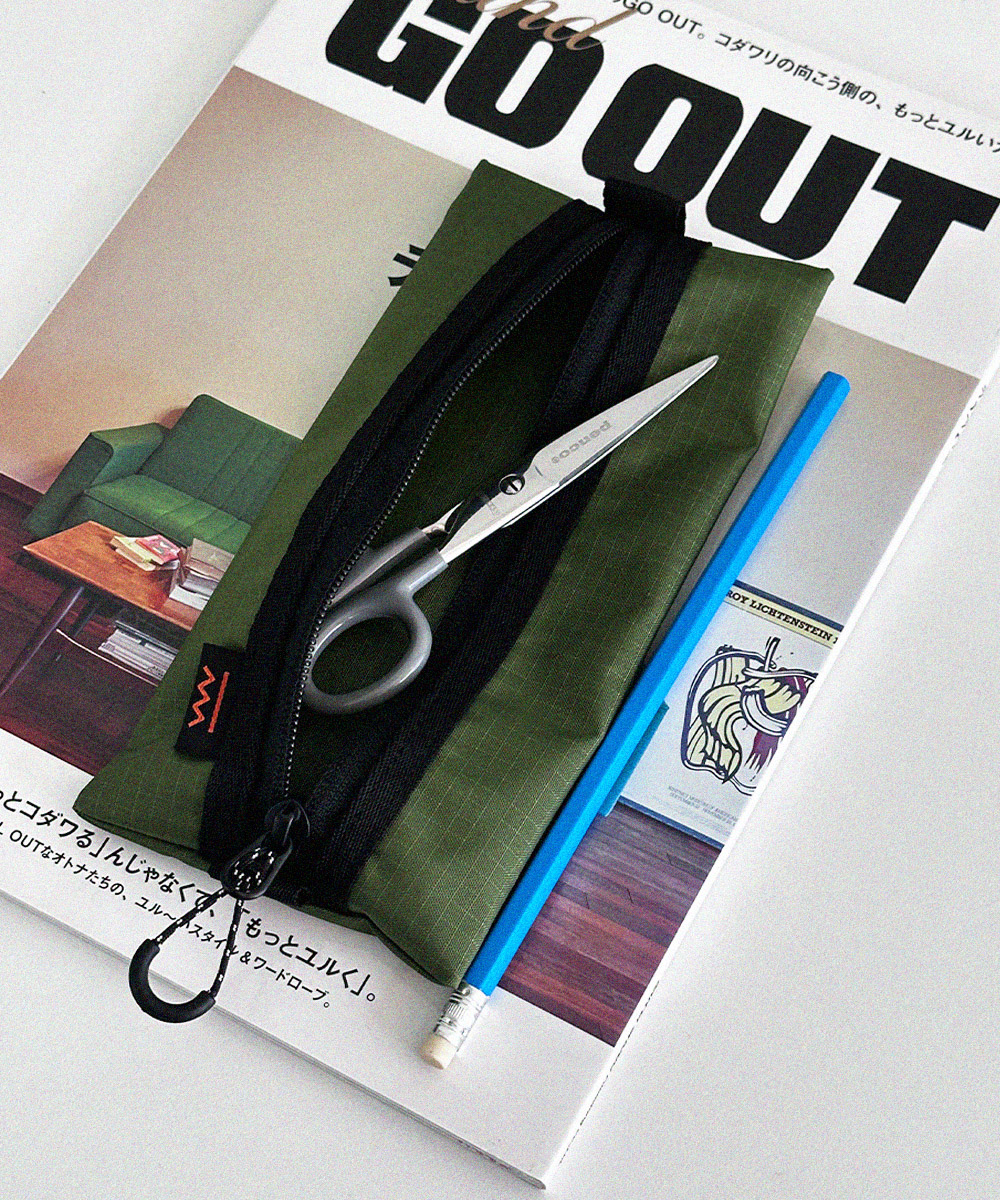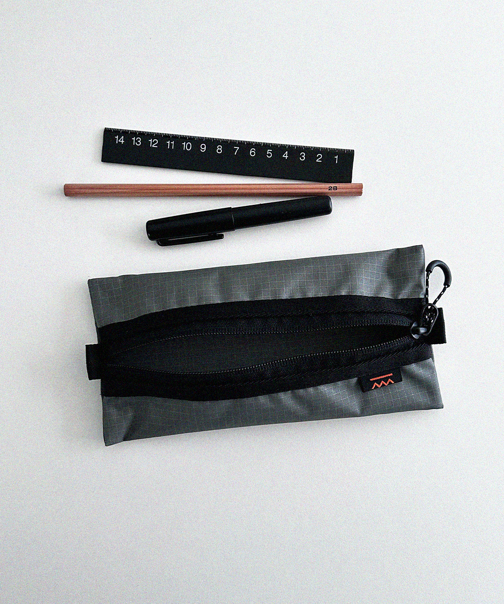 아웃도어 무드의 펜슬 케이스 입니다. PU코팅된 원단을 사용하여 각이 잘 잡히는 형태를 유지합니다.