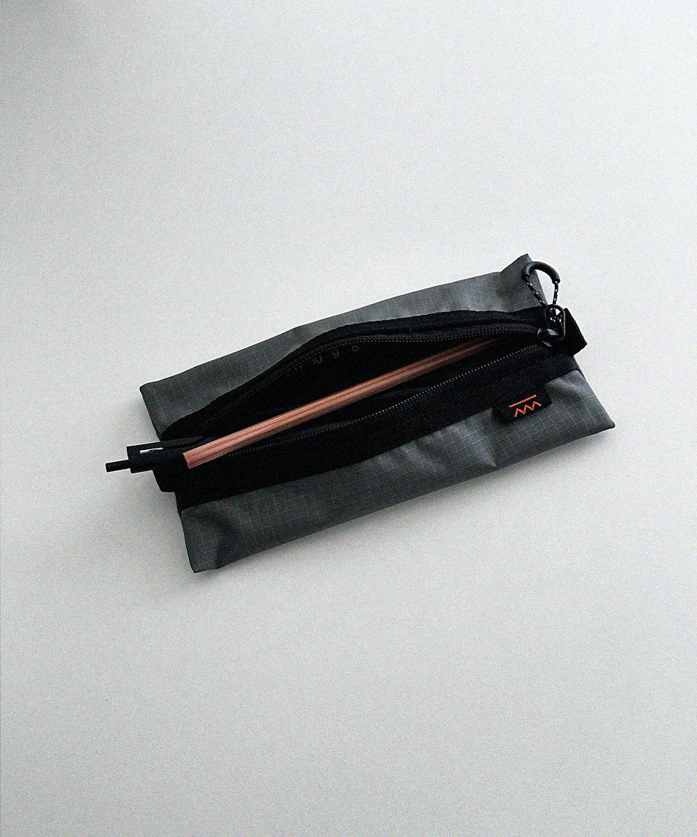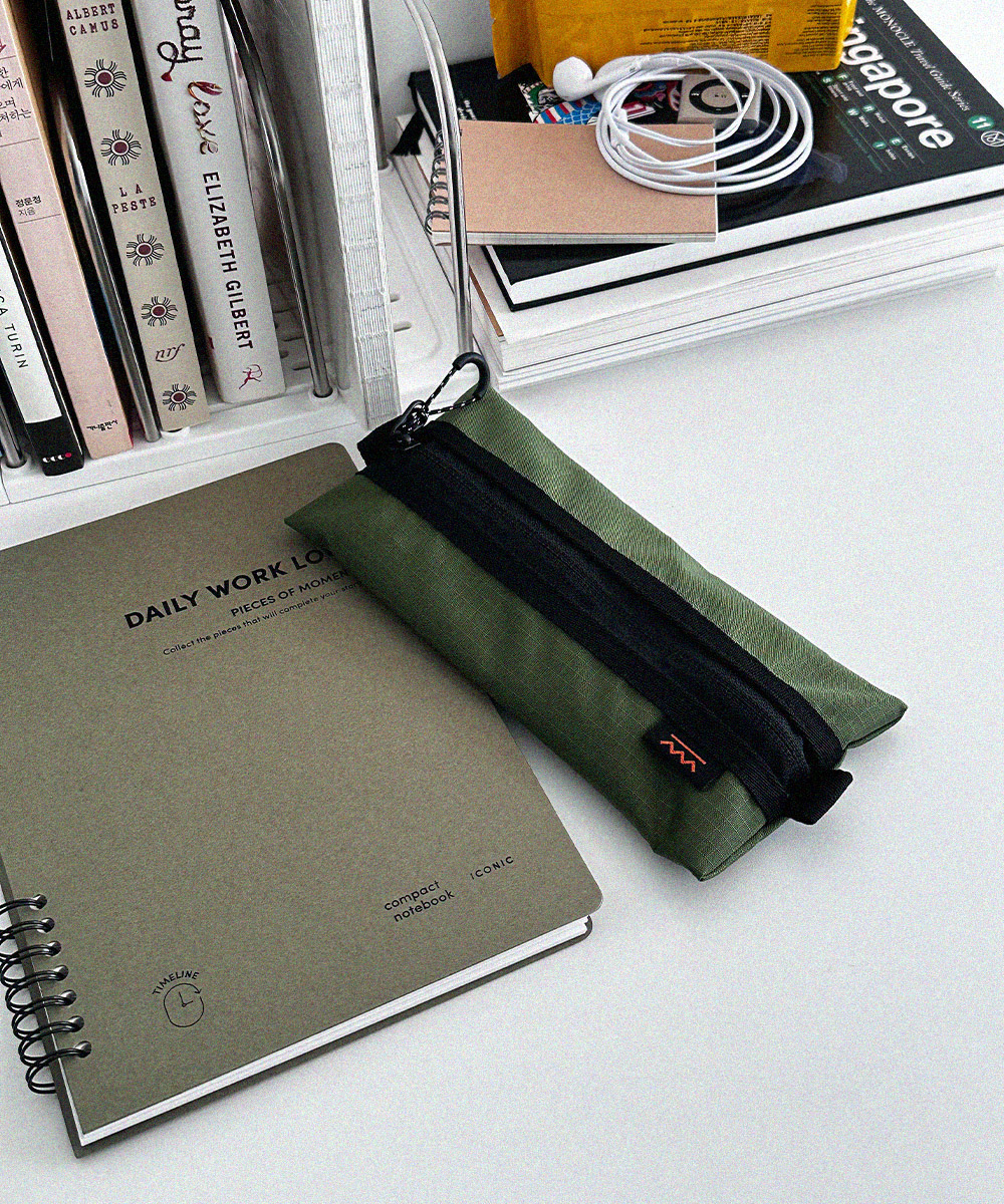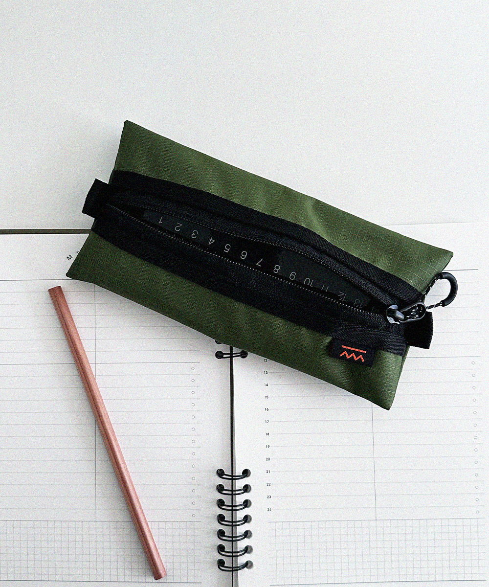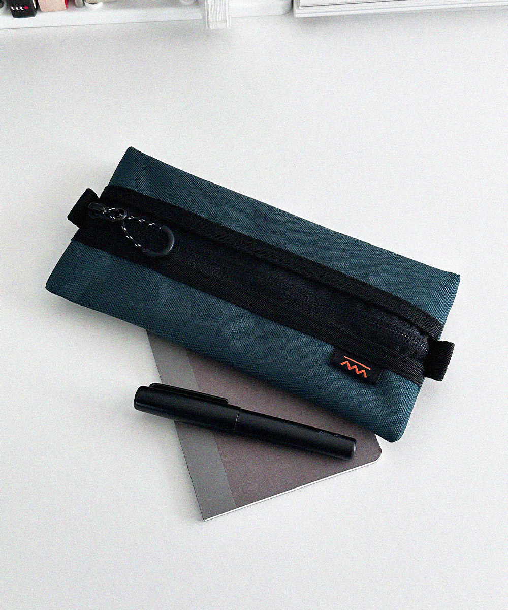 아웃도어 무드의 펜슬 케이스 입니다. PU코팅된 원단을 사용하여 각이 잘 잡히는 형태를 유지합니다.