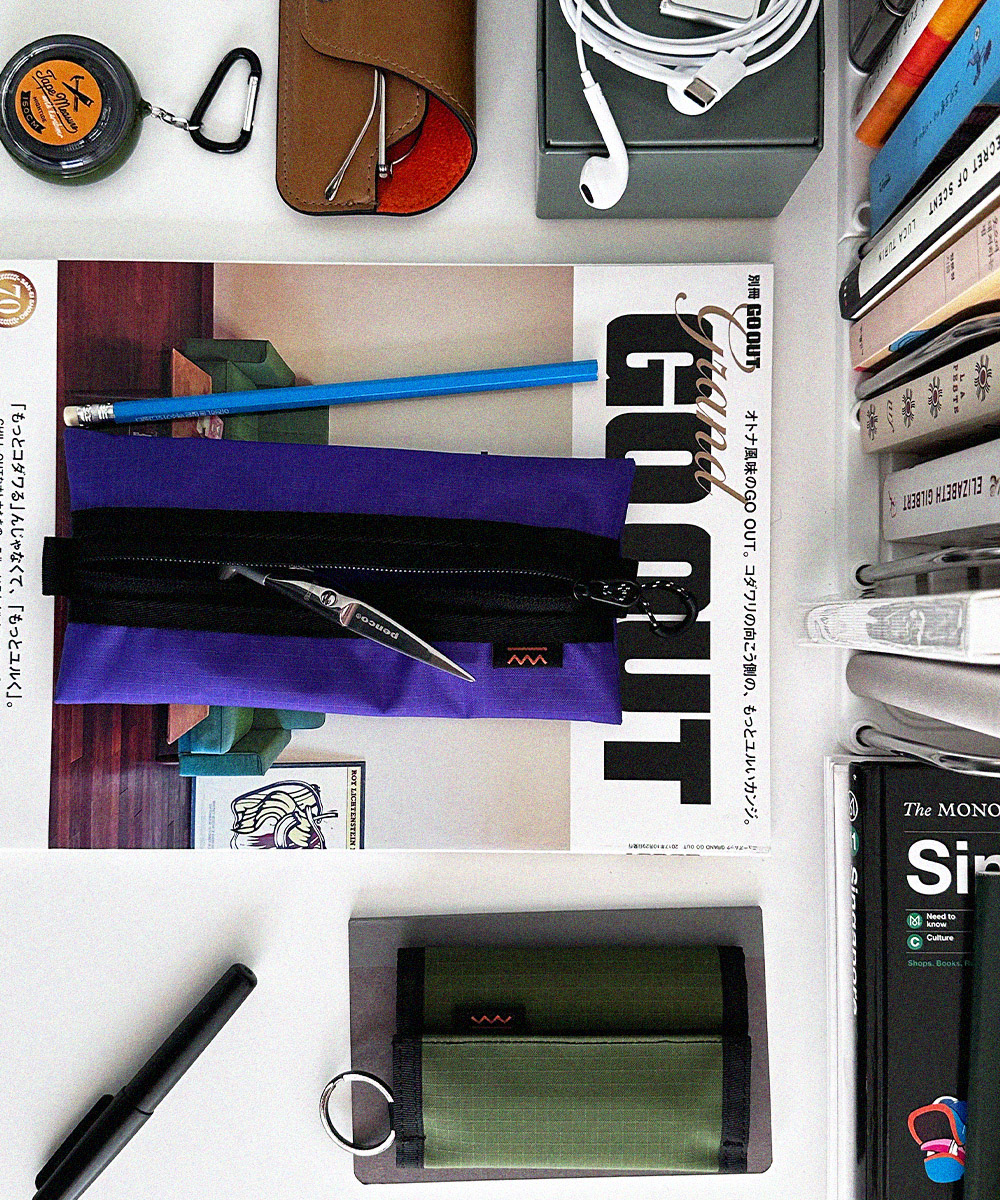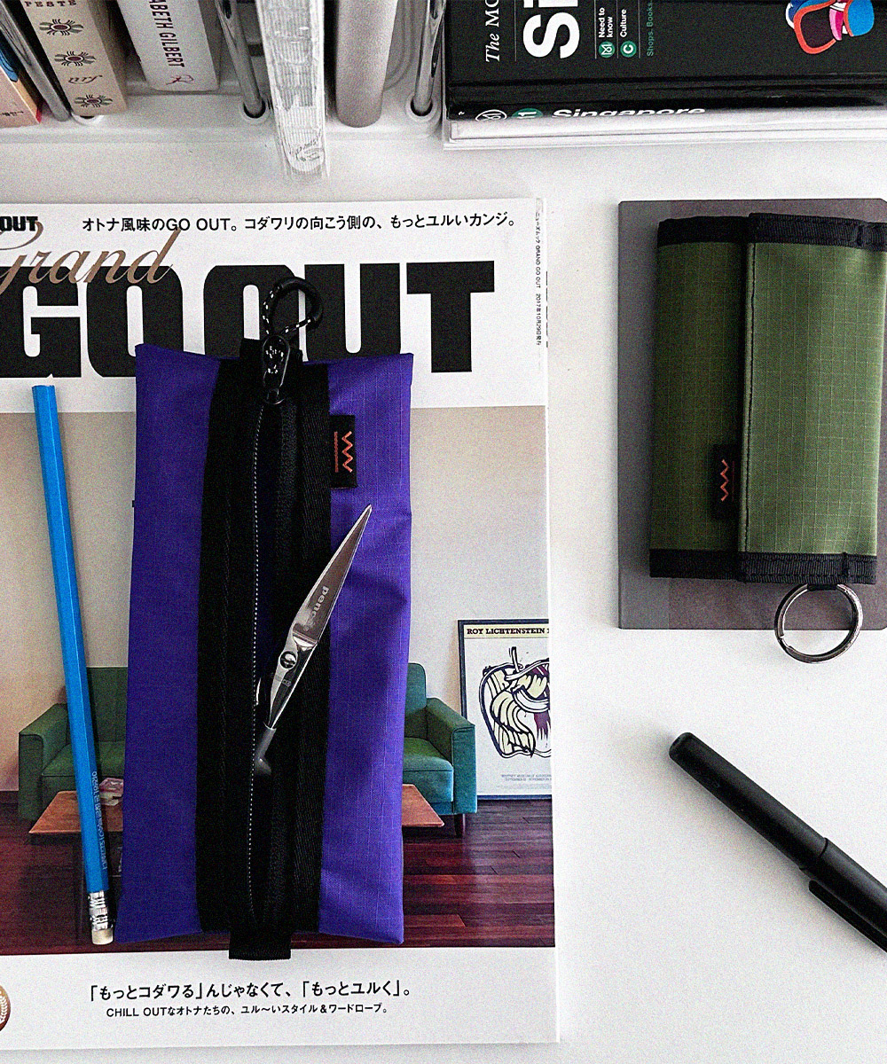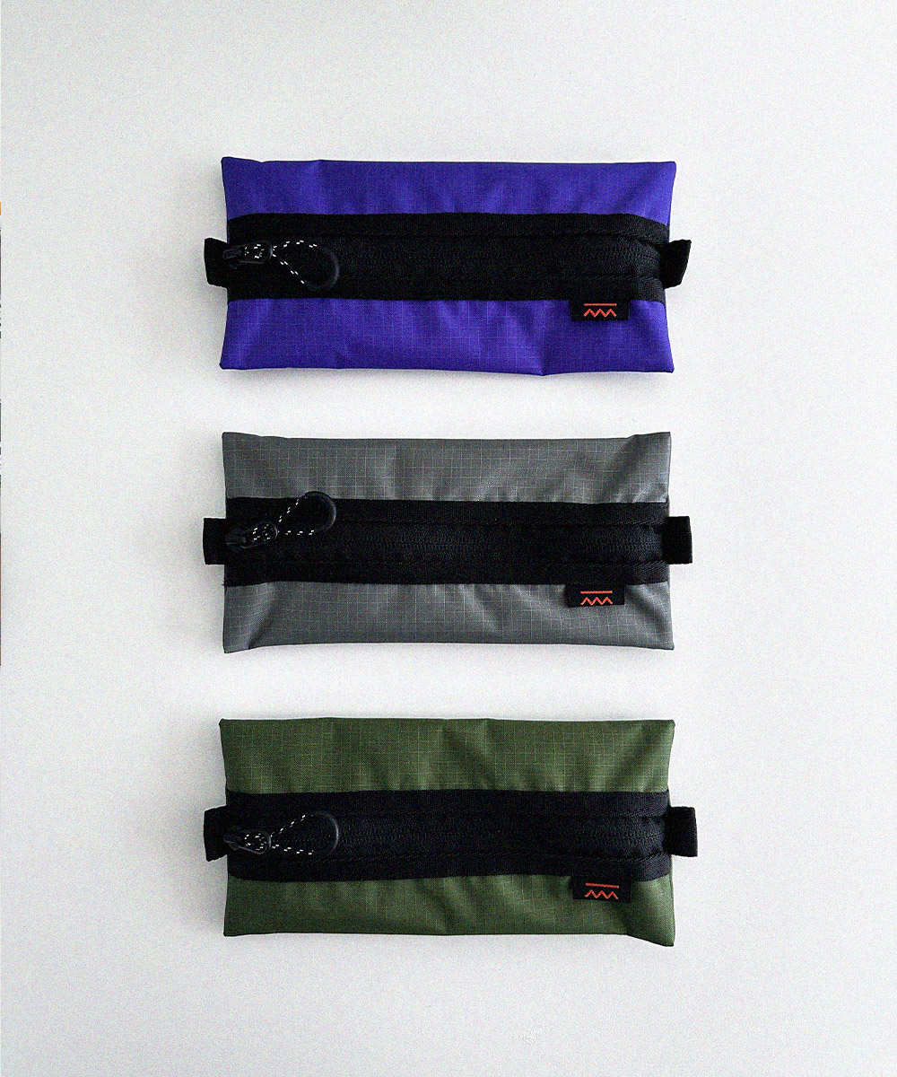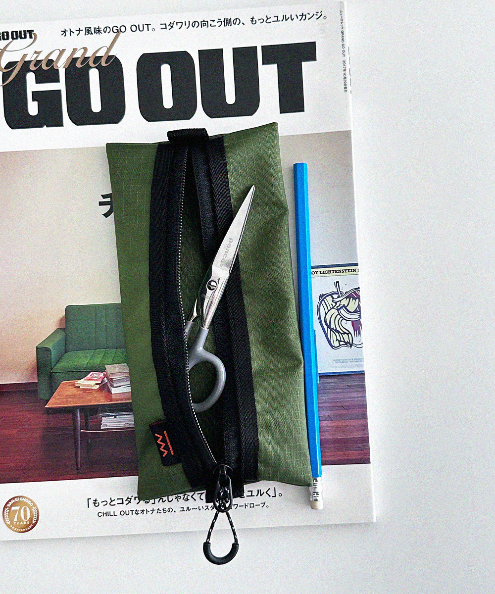 아웃도어 무드의 펜슬 케이스 입니다. PU코팅된 원단을 사용하여 각이 잘 잡히는 형태를 유지합니다.